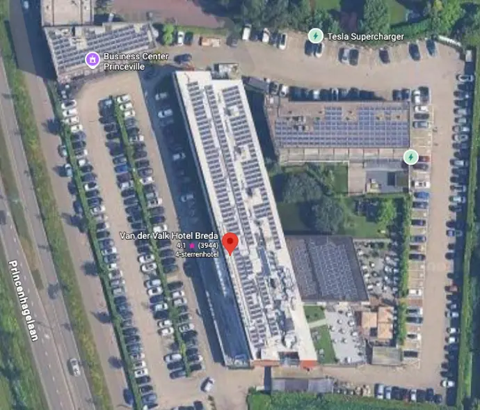 Op het dak van Van der Valk Breda liggen al zonnepanelen, momenteel in een zuidopstelling. Om de totale opwek te vergroten, wordt gekeken naar een oost-west opstelling. Daarmee passen er meer panelen op het dak en wordt de energieproductie beter verdeeld over de dag.